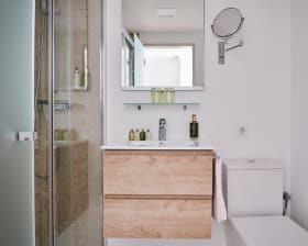 Her bor dere i romslige leiligheter på ca. 45 kvm med egen balkong, separat soverom, stue med spiseplass og kjøkkenkrok - perfekt for deg som ønsker mer plass og fleksibilitet under langtidsoppholdet. Leilighetene har en lys og moderne innredning med en hjemmekoselig atmosfære.